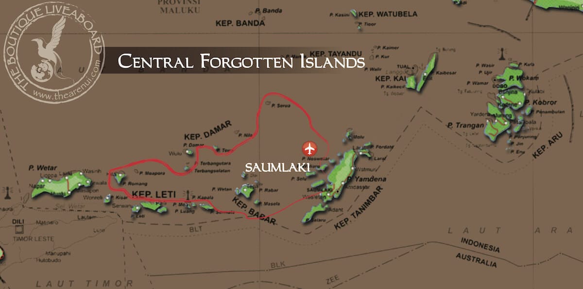 The Forgotten Islands are part of a remote archipelago in the southeast corner of the Moluccas (Maluku Tenggara). Despite the remote feeling in other parts of Indonesia (such as Alor or Banda), the Forgotten Islands are isolated even by Indonesian standards, covering a 1,000 km long chain of islands staring at Timor and extending up to West Papua. The Tanimbar group of around 65 islands that separate the Banda Sea from the Arafura Sea include the island of Yamdena where the capital Saumlaki is where this cruise begins.